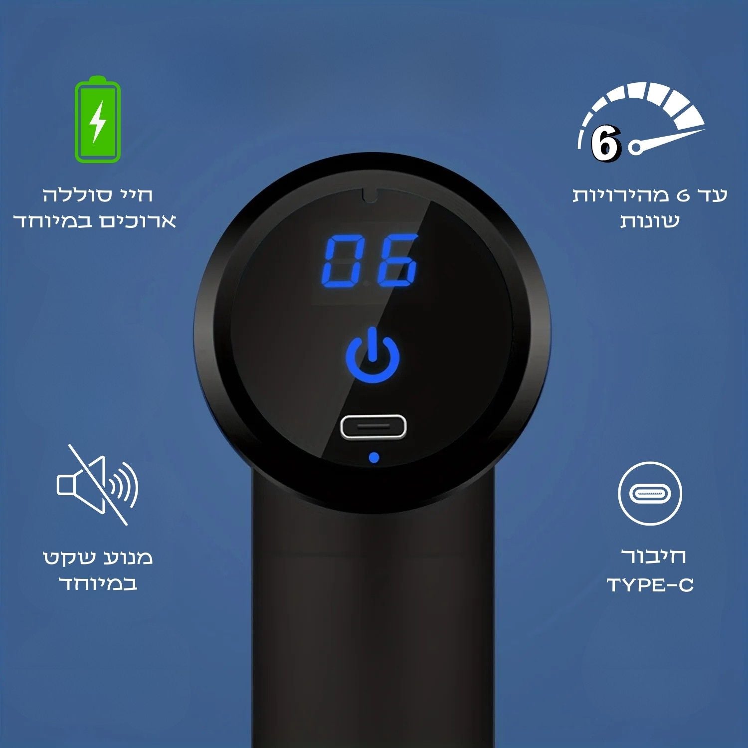 - עד 6 מהירויות שונות – להתאמה מושלמת בין עיסוי עדין להרפיה לבין טיפול עמוק בשרירים תפוסים