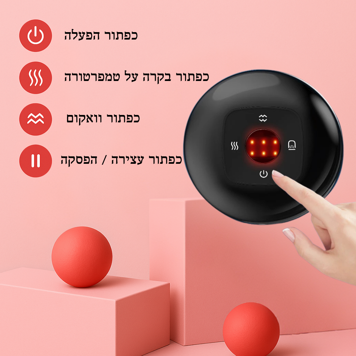 - מרפק / זרוע עליונה – מתאים להקלה על מתחים אזוריים ולשיפור זרימת הדם בשרירי היד.