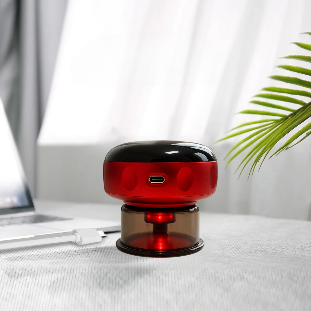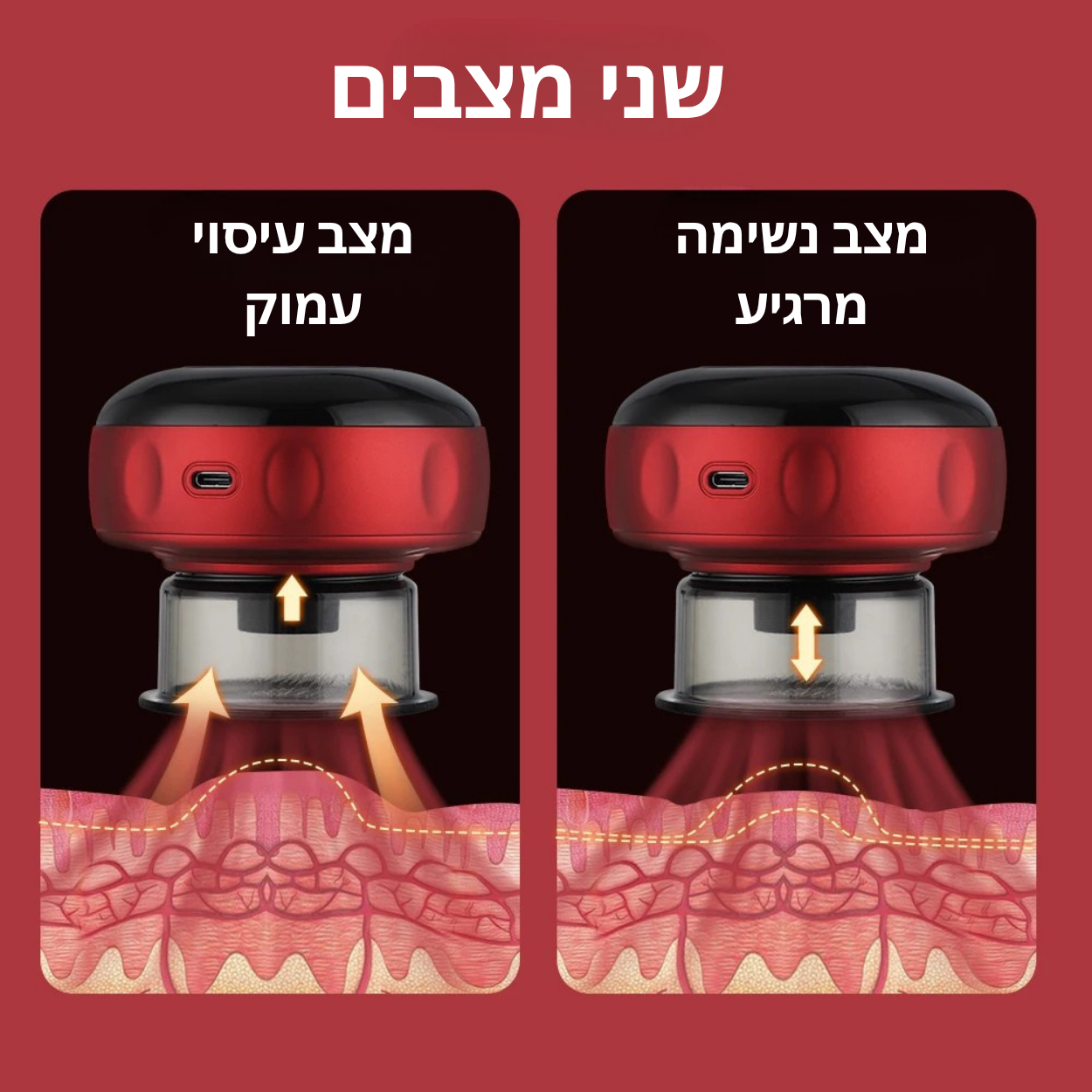 - הדמיה מציגה משיכה עמוקה של העור בדומה לטיפול כוסות רוח קלאסי